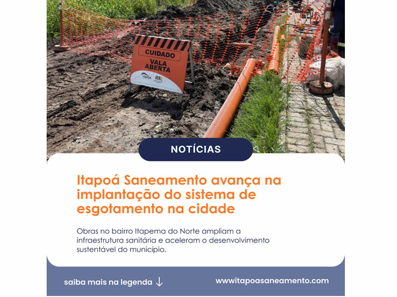 "A Itapoá Saneamento visa desenvolver seus trabalhos buscando a sustentabilidade social, ambiental e econômica."